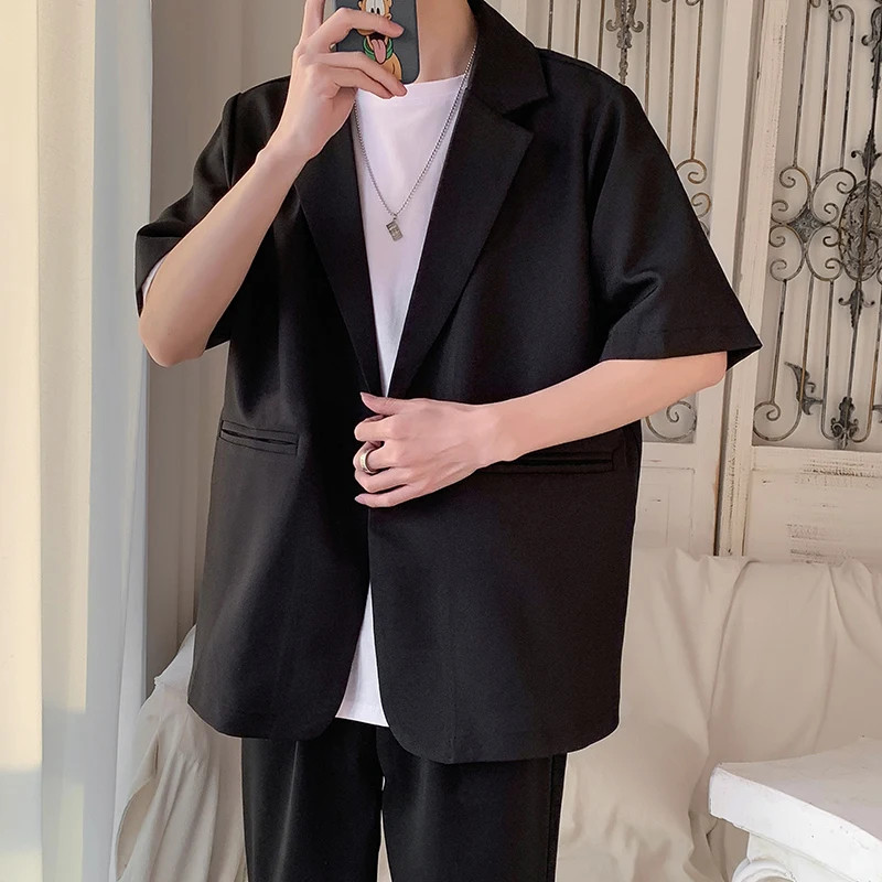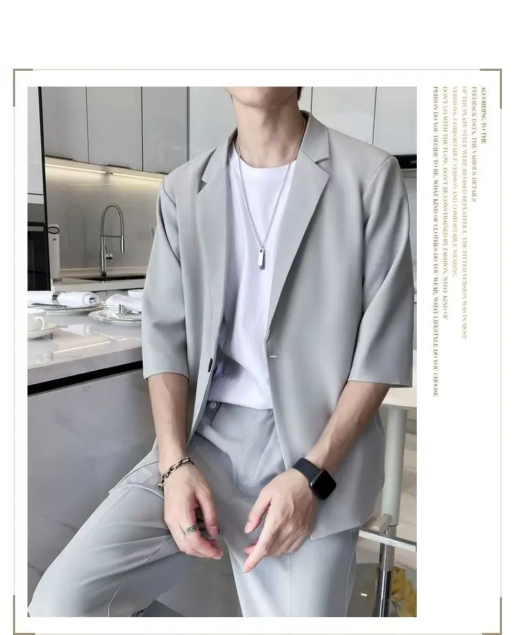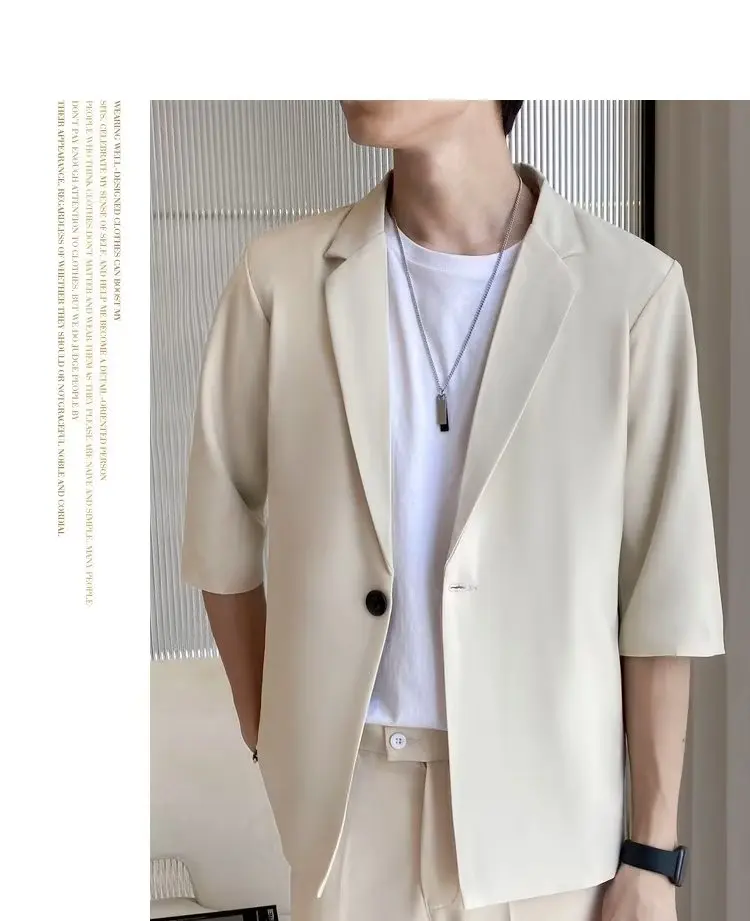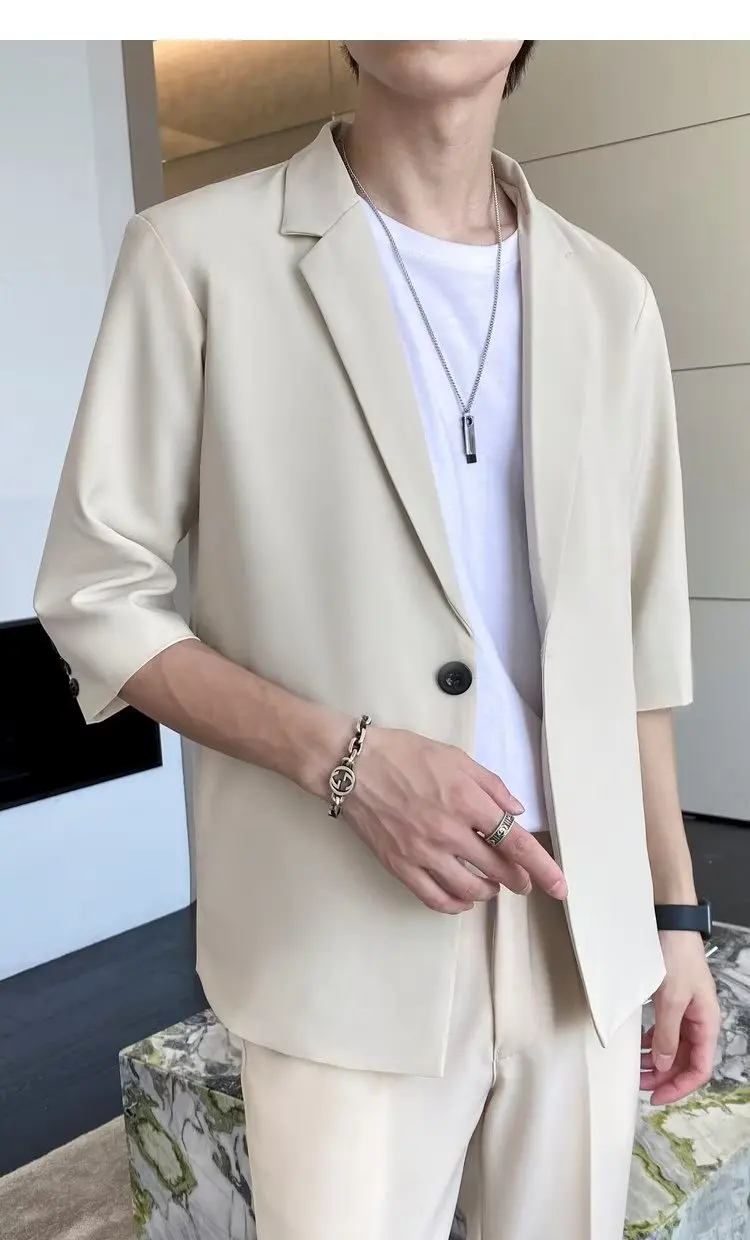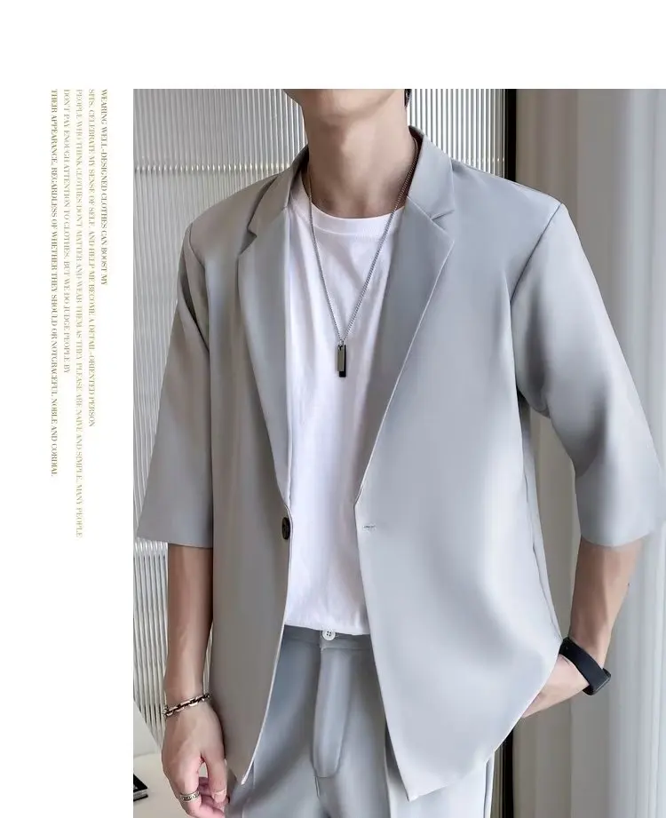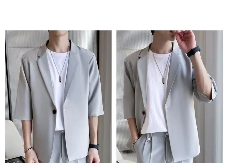 Casual Mens Short Sleeve Blazers Summer Clothing Handsome Suit