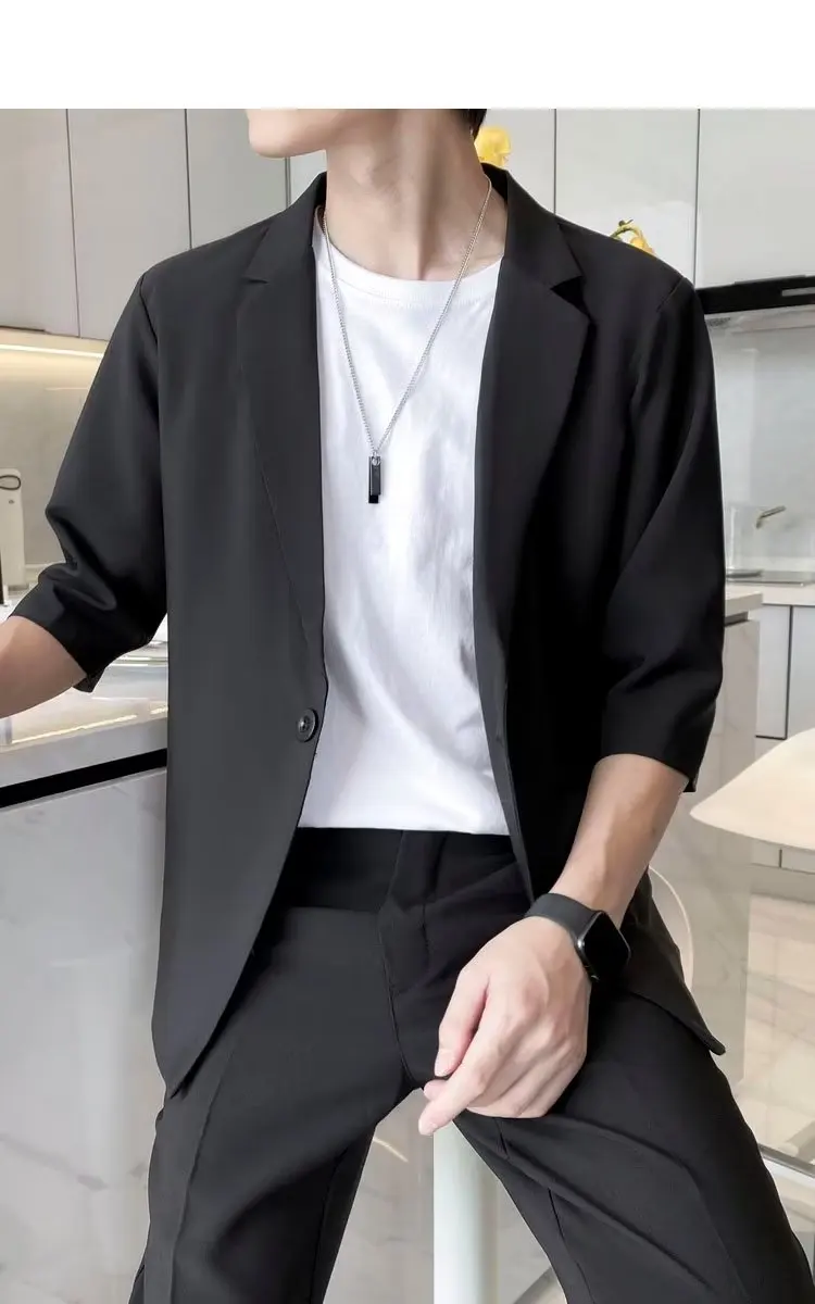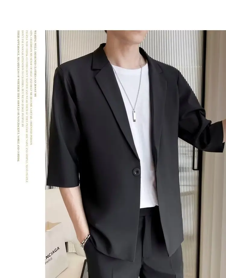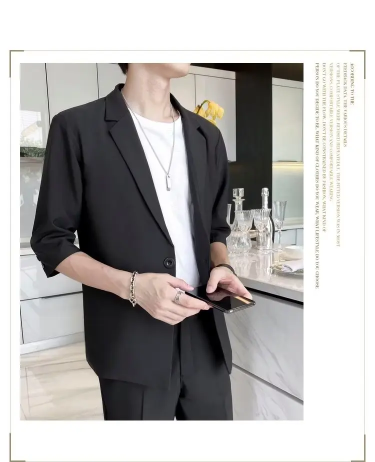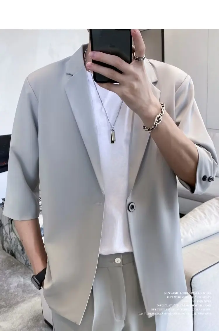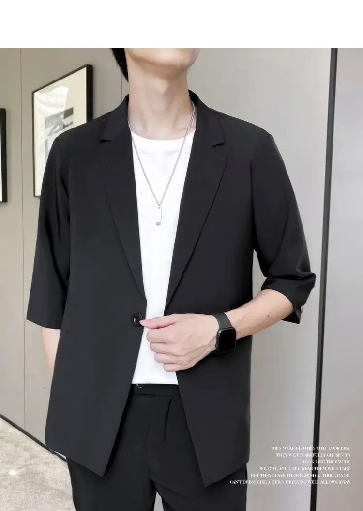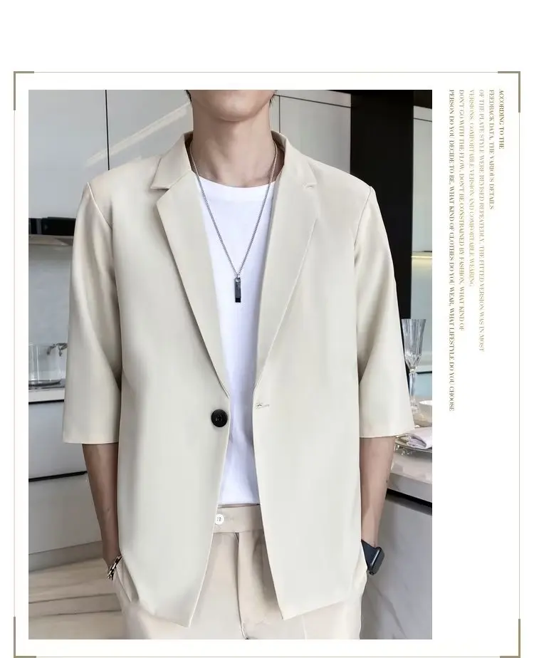 Casual Mens Short Sleeve Blazers Summer Clothing Handsome Suit