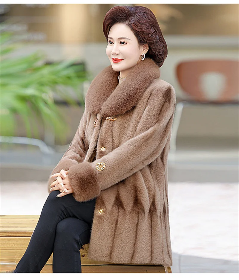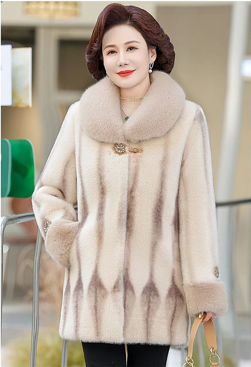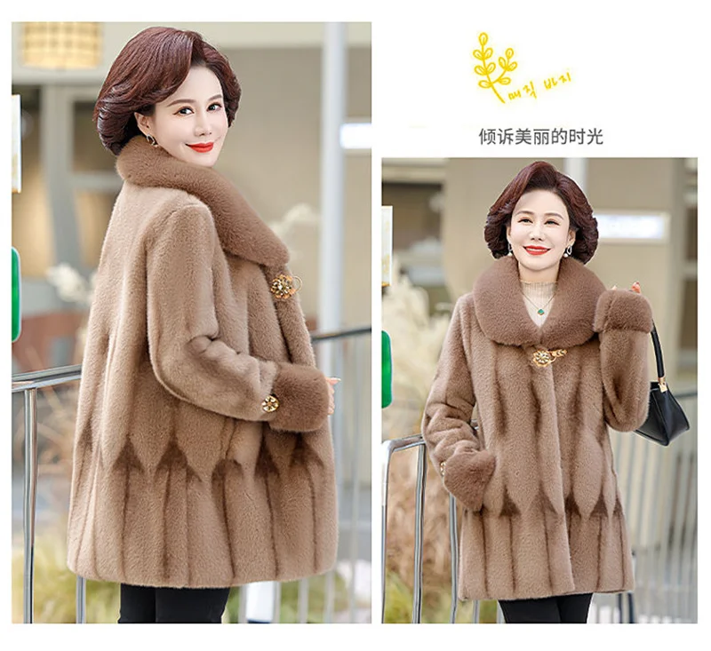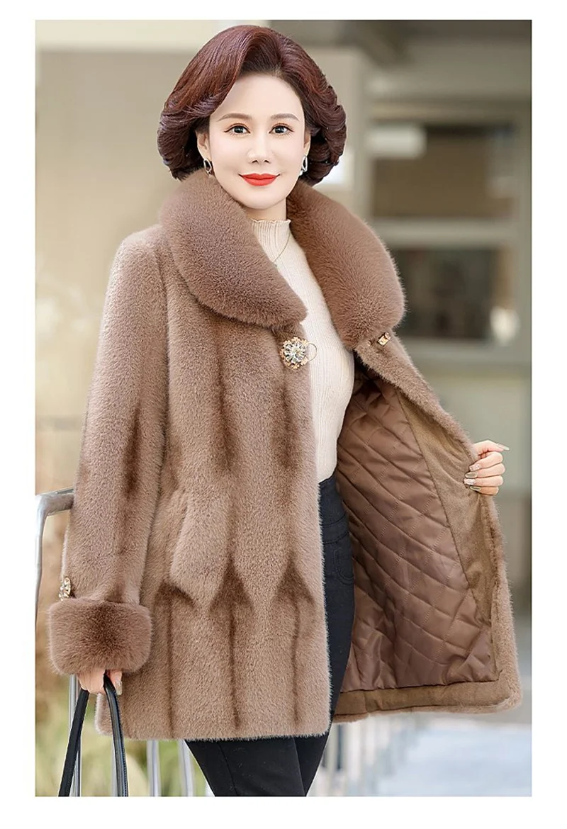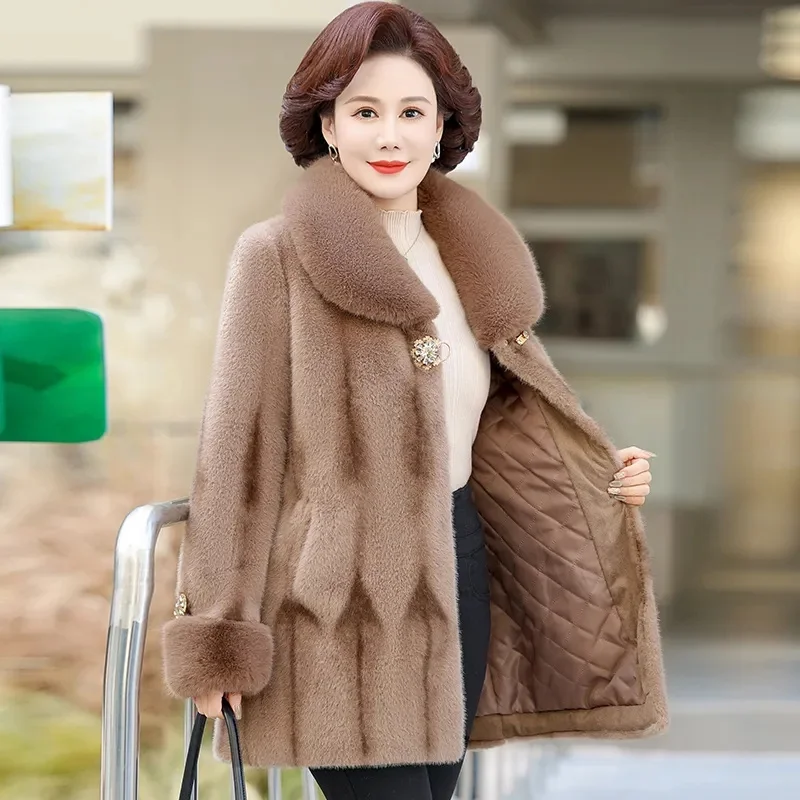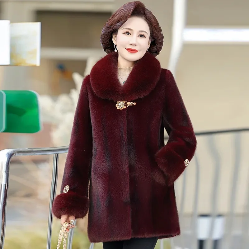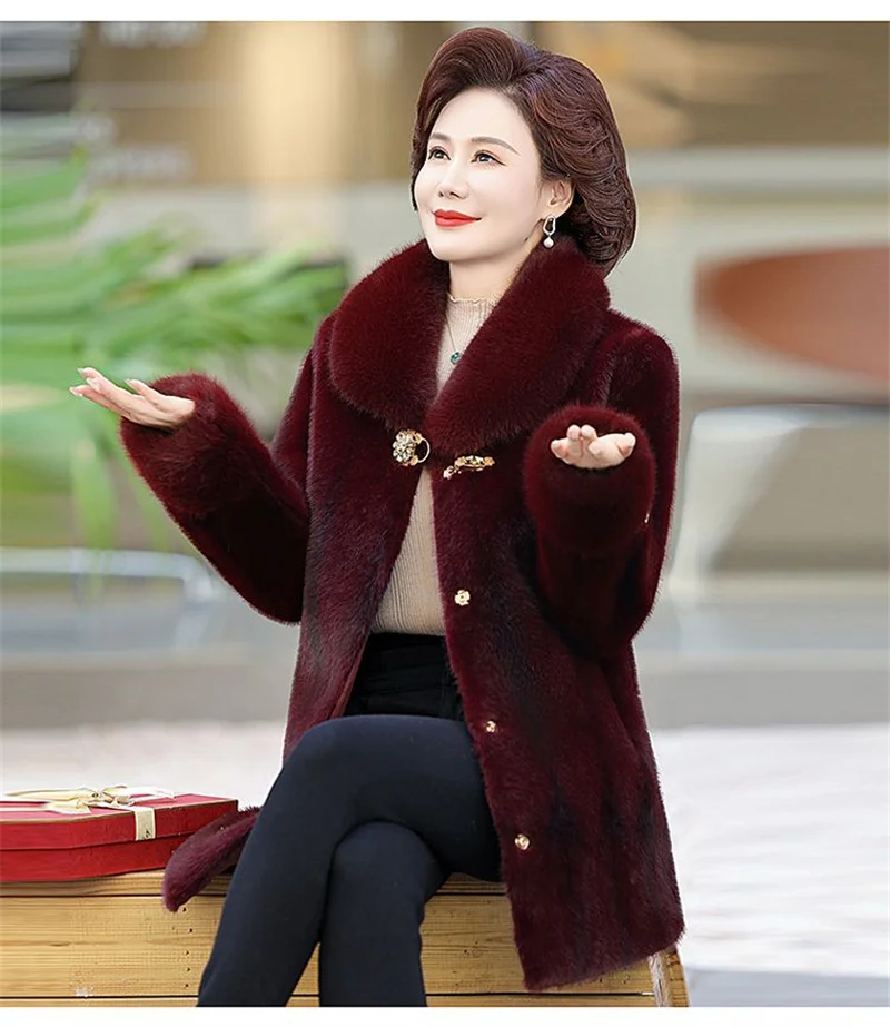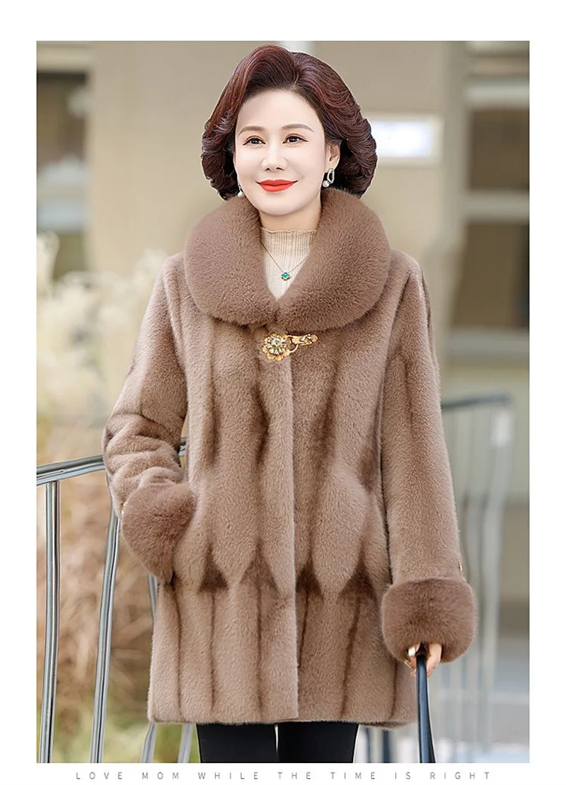 High Quality Mink-like Fur Jacket 6XL Woman New Woolen Coat Winter 2025 Middle-Aged Elderly Long Imitation Mink Overwear Ladies