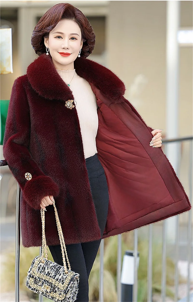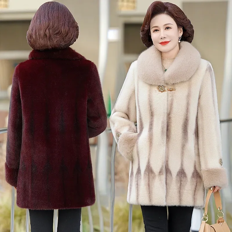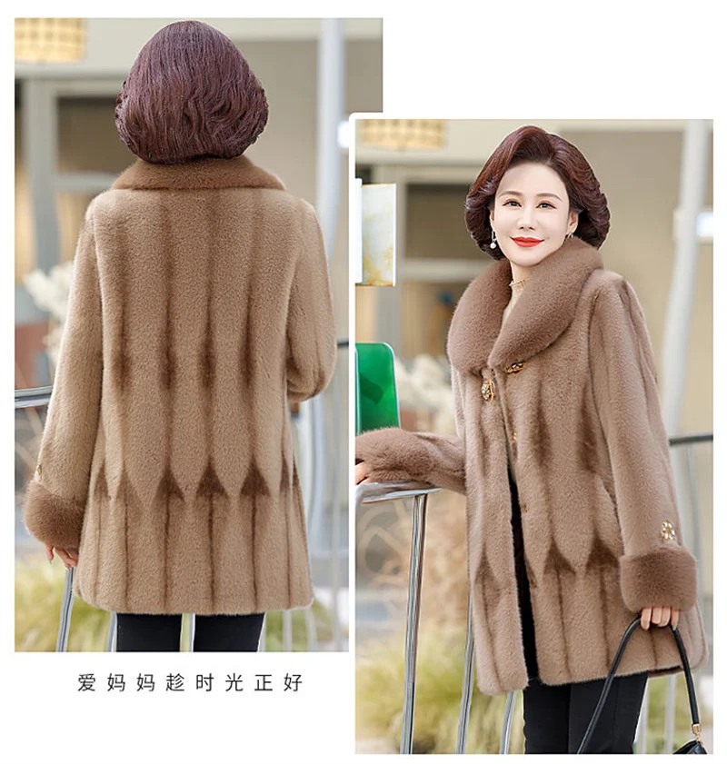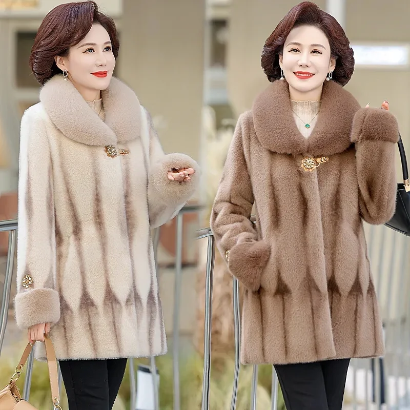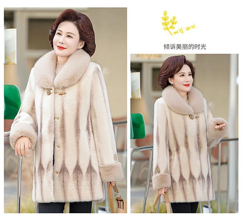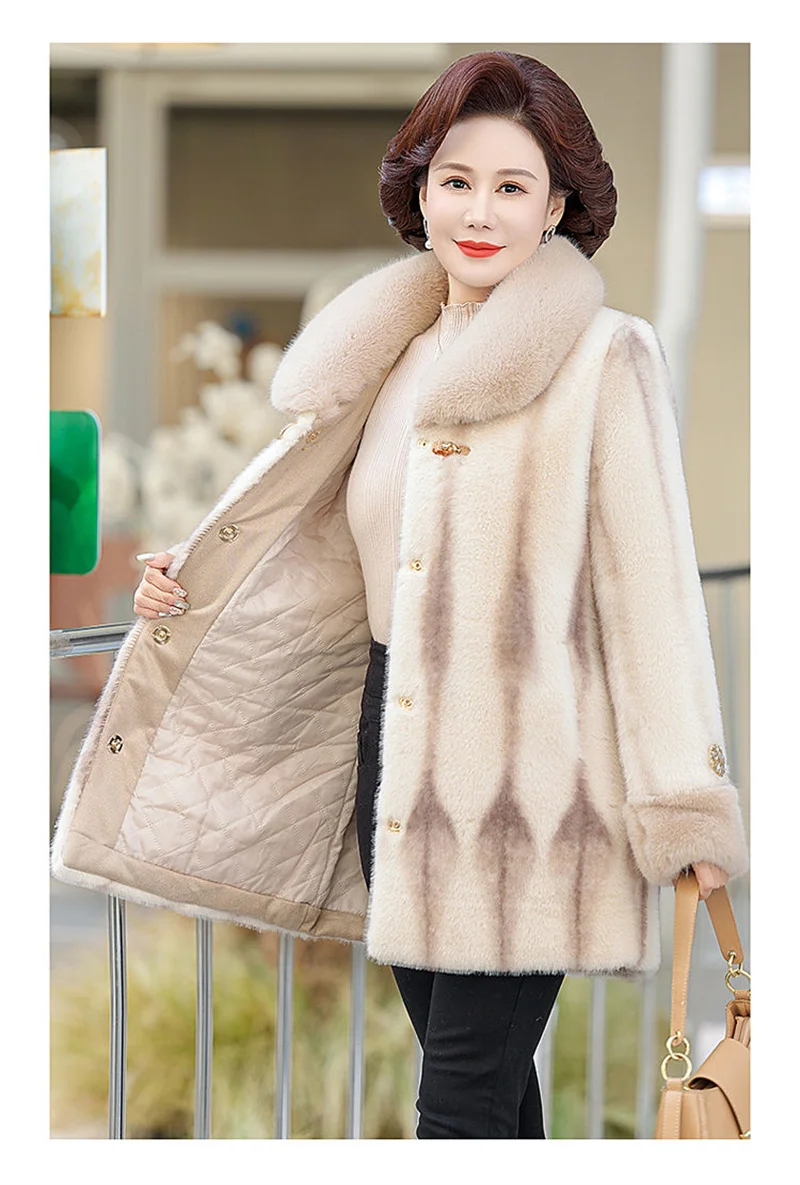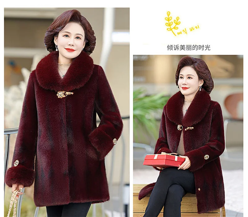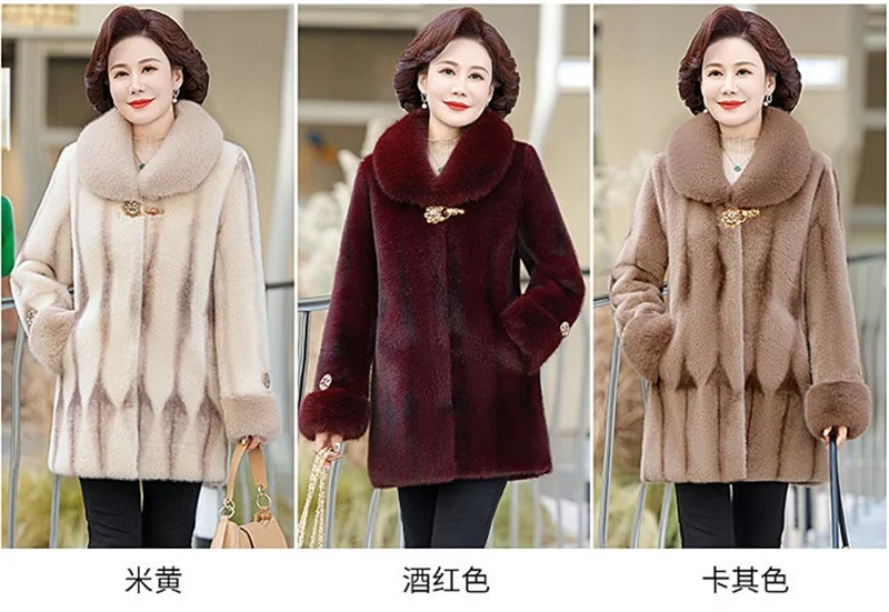 High Quality Mink-like Fur Jacket 6XL Woman New Woolen Coat Winter 2025 Middle-Aged Elderly Long Imitation Mink Overwear Ladies