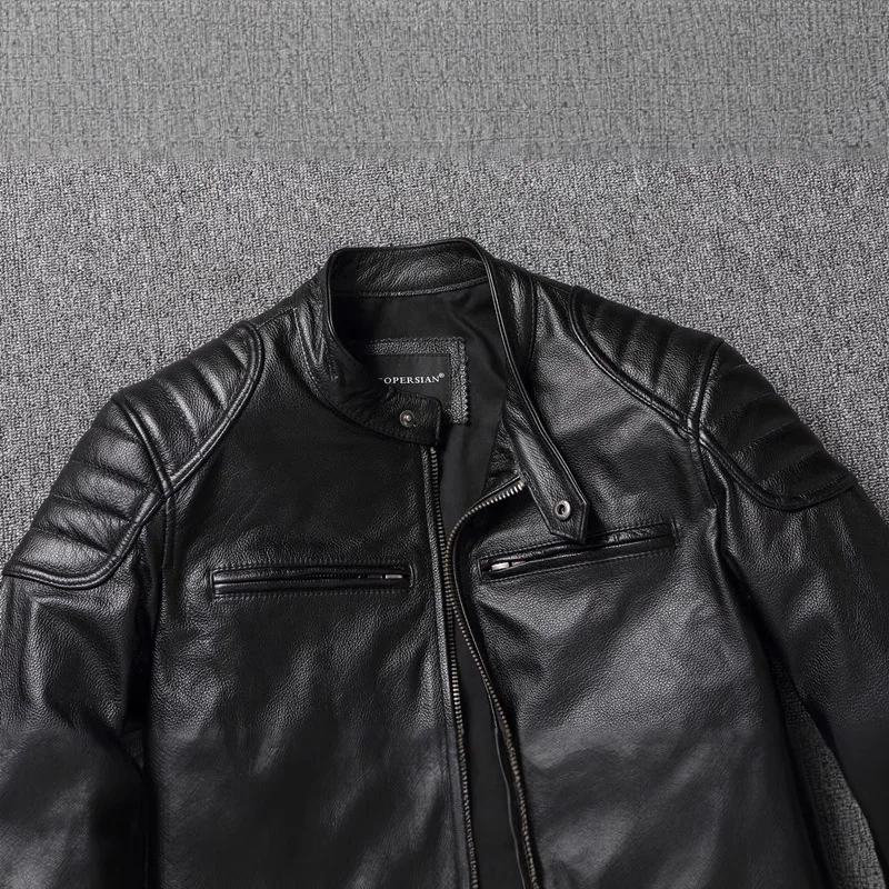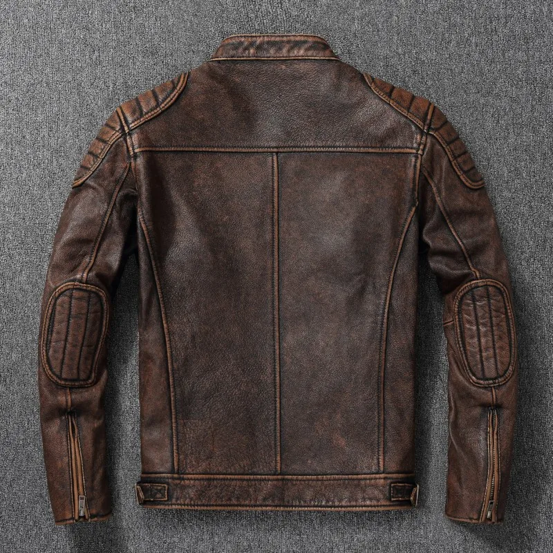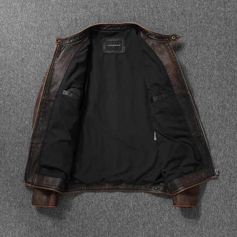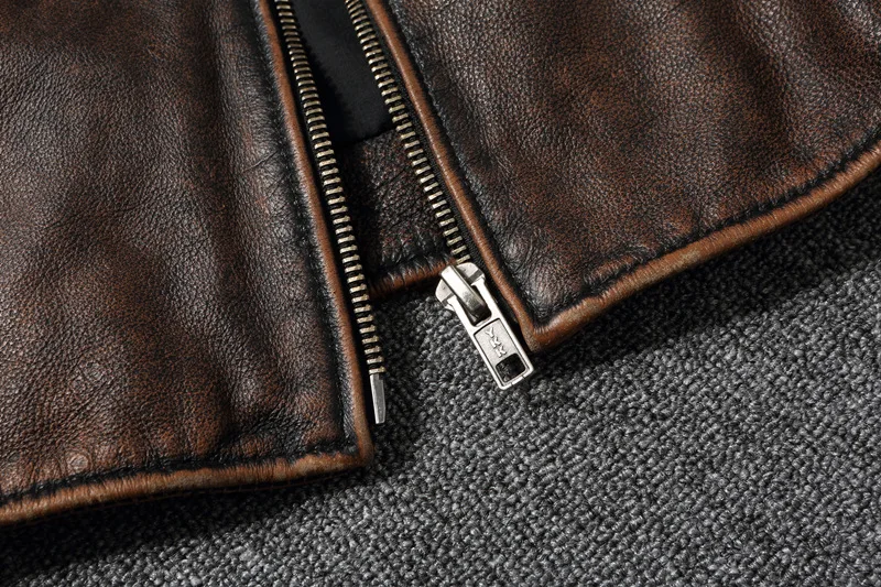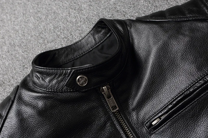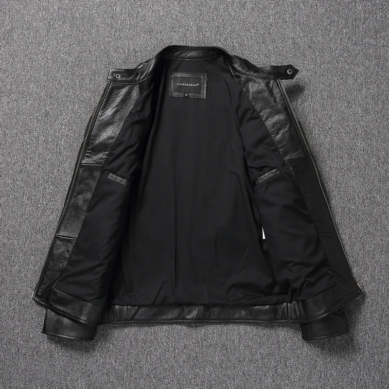 Motorcycle Riding First Layer Cowhide Leather Jacket Men’s Stand-up Collar Youth Spring Autumn Large Size Jackets