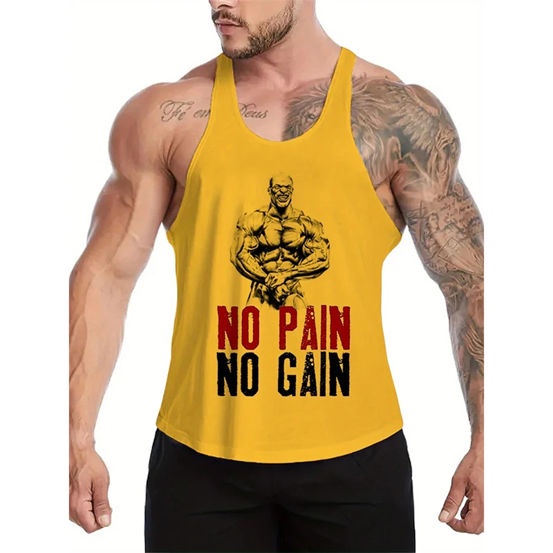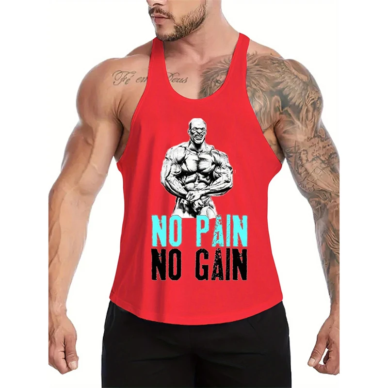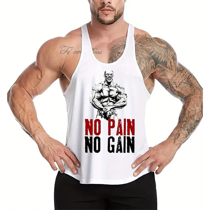 No Pain No Gain Graphic Fitness Vest For Men Gym Self-motivation Sleeveless Shirt Summer Breathable Quick Dry Trend Tank Top